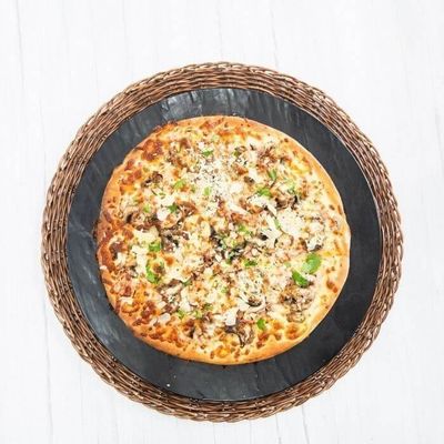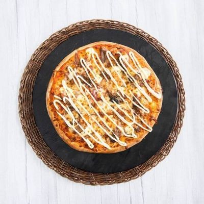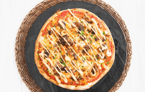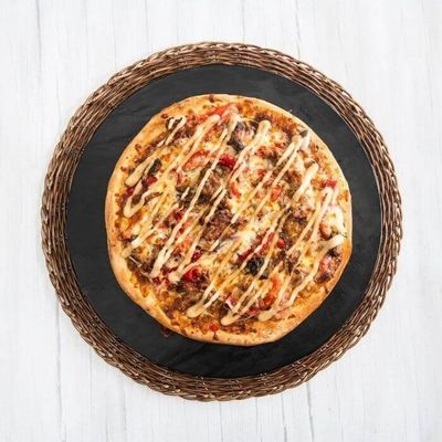 Cheese Base Sauce, Pulled Beef, Capsicum, Mushroom, Onion, Mozzarella and Cheese Sauce.