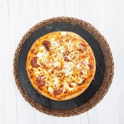 Tomato Base Sauce, Cabanossi, Ham, Capsicum, Mushroom, Olive, Onion and Mozzarella.