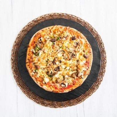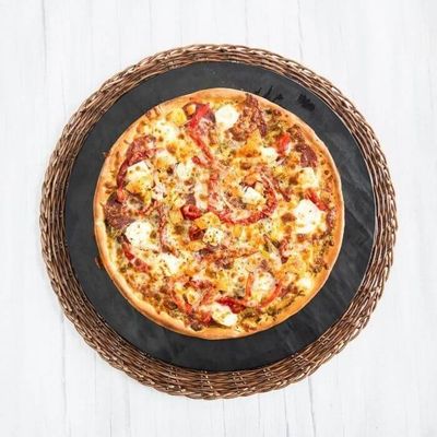 Tomato Base with Spanish onion, Capsicum, Beef, Chorizo and Jalapenos topped with Peri Peri