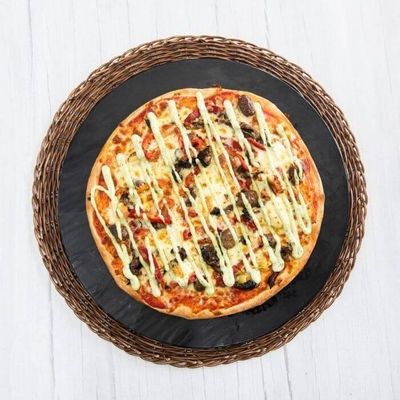 BBQ Base Sauce, Bacon, Pulled Pork, Marinated Capsicum, Onion, Mozzarella and Smokey BBQ Aioli.